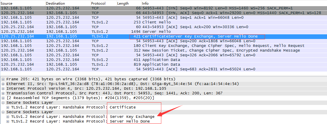 RSA算法服務(wù)端沒(méi)有Server key Exchange。